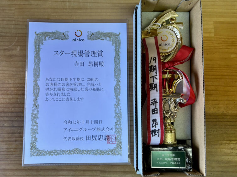 先日、キックオフ会議にてスター現場管理賞をいただきました。