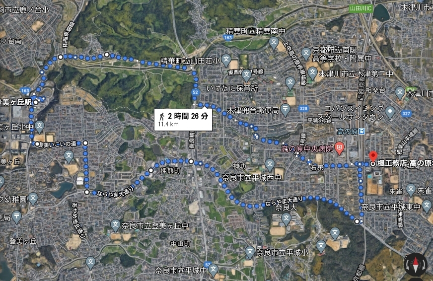 高の原から、学研なら登美ヶ丘経由でUターンという
