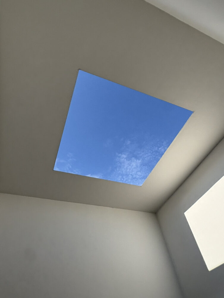 正方形に切り取られた空を見上げる空間で、時間がゆっくり流れているように感じられ、