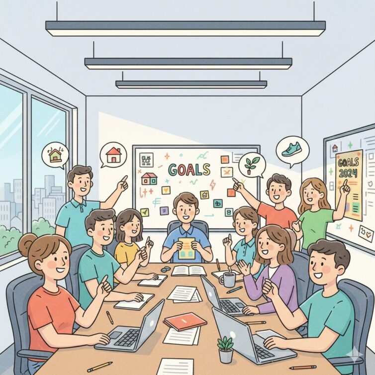この会では、仕事のスキルアップに関することはもちろん、プライベートでの挑戦や健康管理に至るまで、多岐にわたる目標が語られました。
