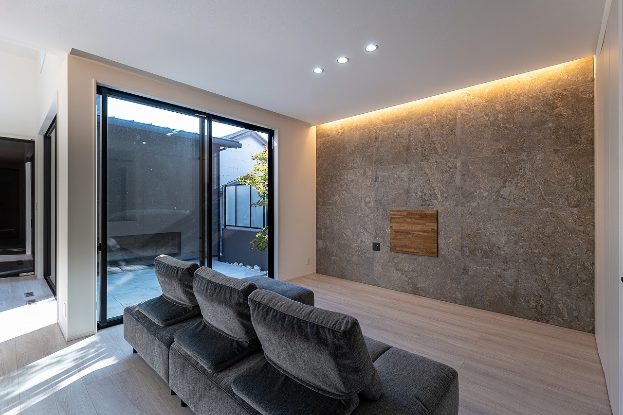 LDKや寝室には間接照明を取り入れ、落ち着いた雰囲気を演出。リビングにはカラー調整ができるライコンを設置し、気分に合わせて光を操れます 。