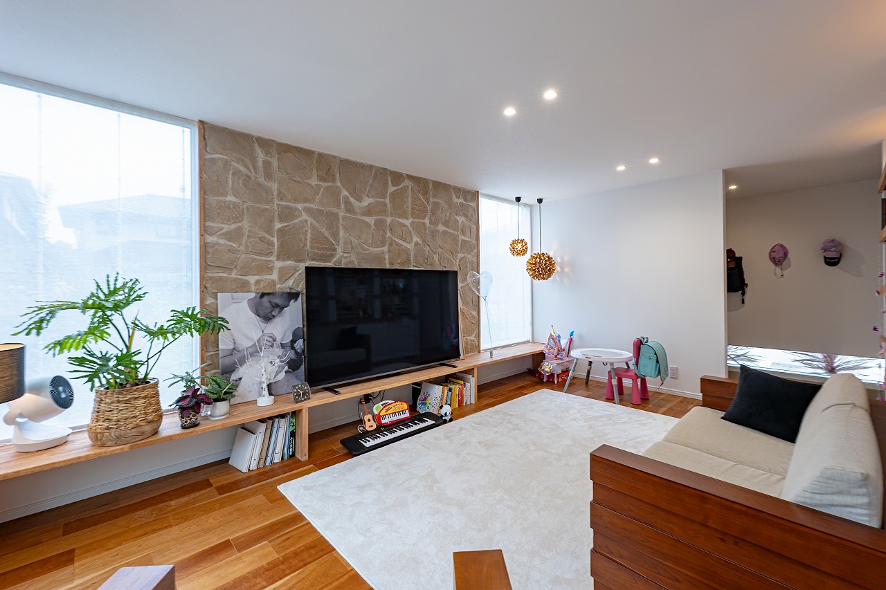 明るく開放的な広々リビング。東側の庭から差し込む柔らかな光が床を照らし、ゆとりあるリビングを一日中明るく演出。爽やかな朝のスタートを叶えます。
