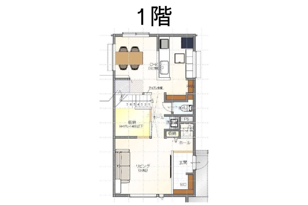 玄関入るとすぐにリビングがあるため、家族が帰ってきてもすぐに「おかえり」と「ただいま」が飛び交う間取りにしました。