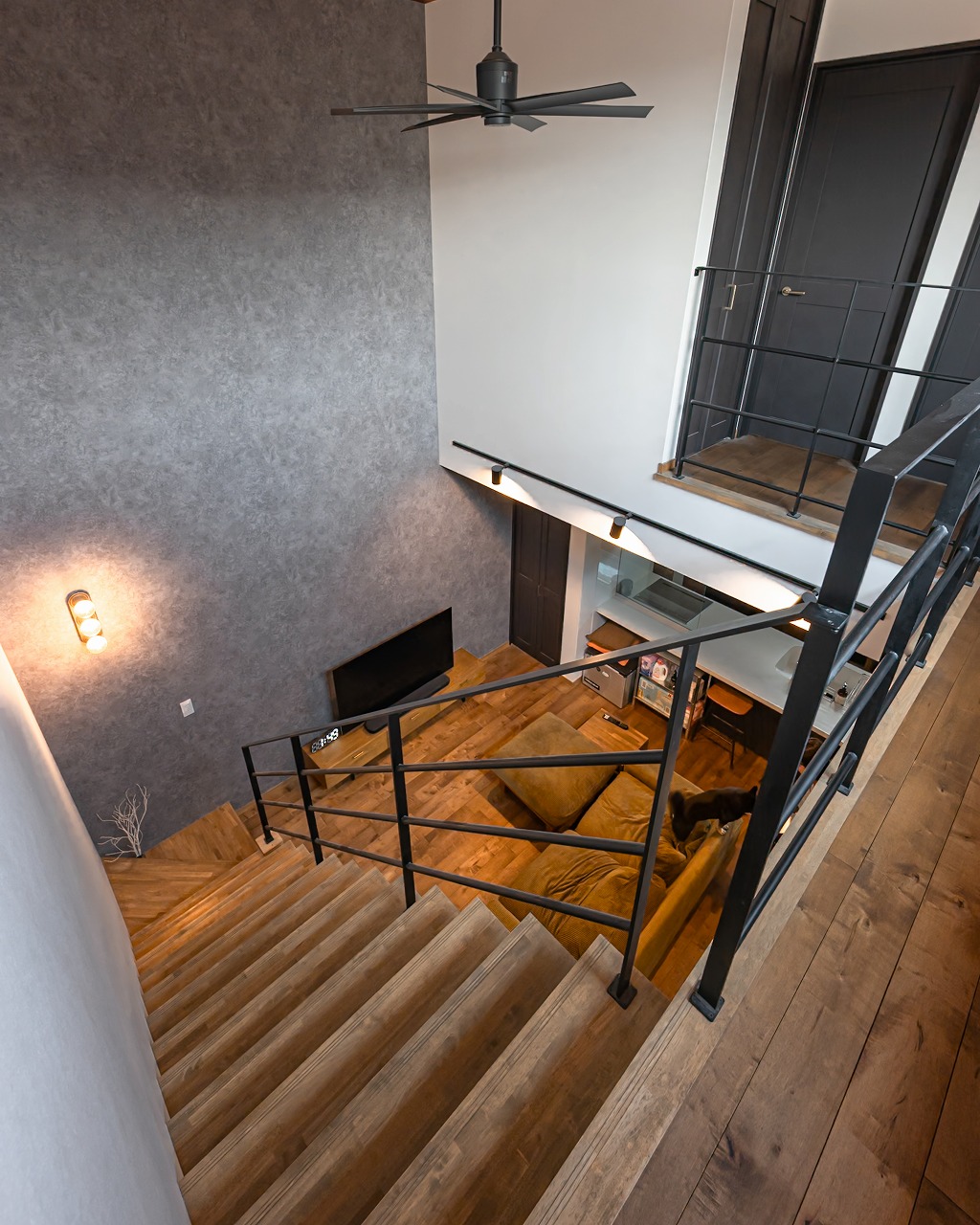 朝、階段を降りながら「おはよう」と声を掛け合う姿が自然と浮かぶ、家族のつながりを感じられる空間です。