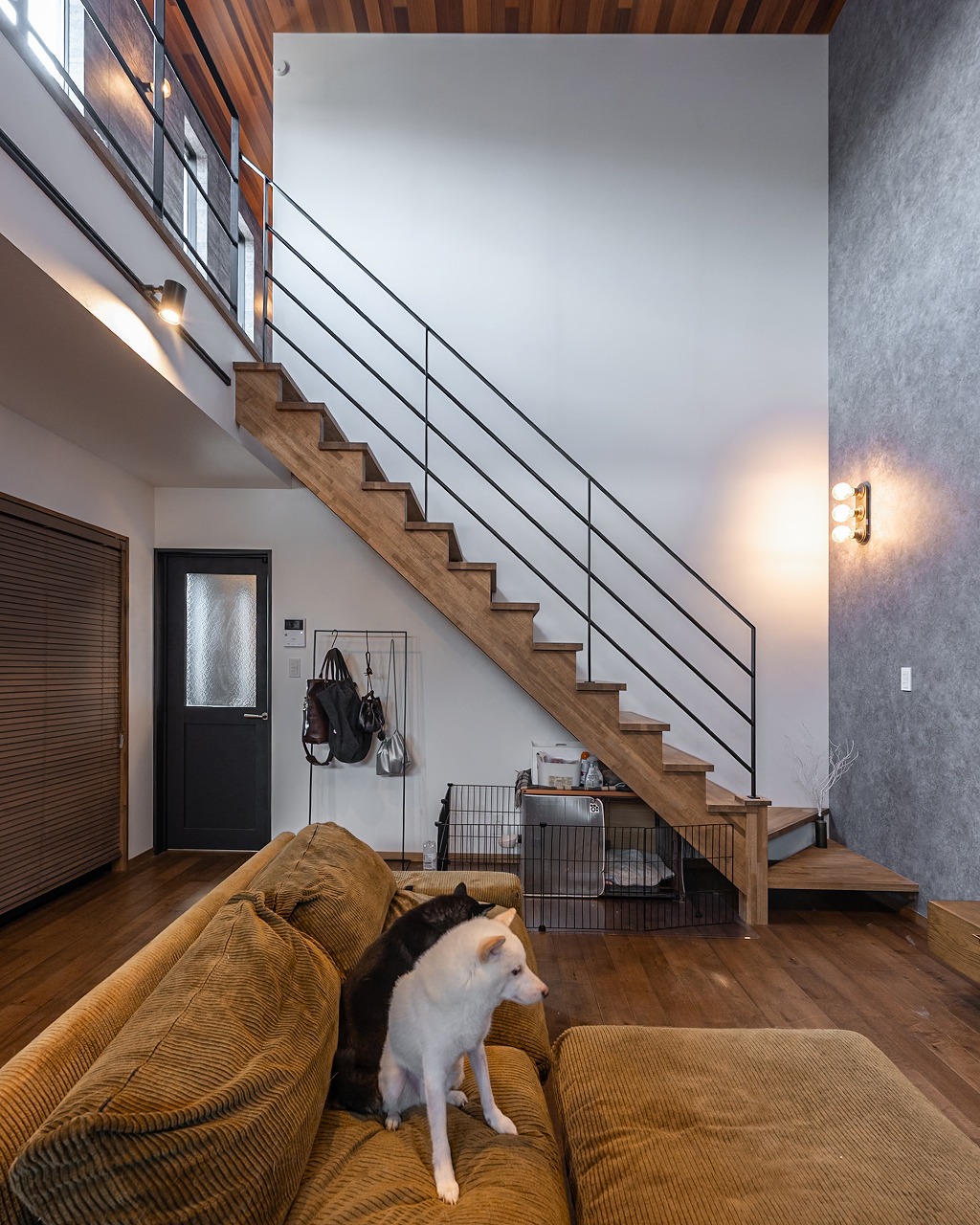 階段下のスペースを、お引き渡し後に迎えるわんちゃんの居場所として活用できるように計画。