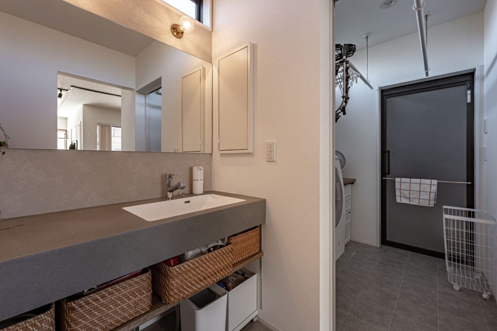 洗面と脱衣室を分離することで、身支度・洗濯・入浴といった動きを同時に行うことが可能。誰かを待つ必要がなく、時間に追われがちな共働き世帯にもやさしい設計です。家族みんなが、自分のペースで動ける暮らしが叶います。