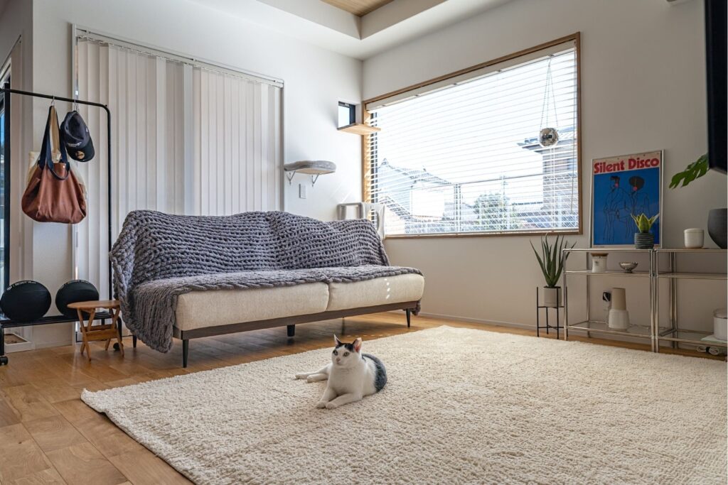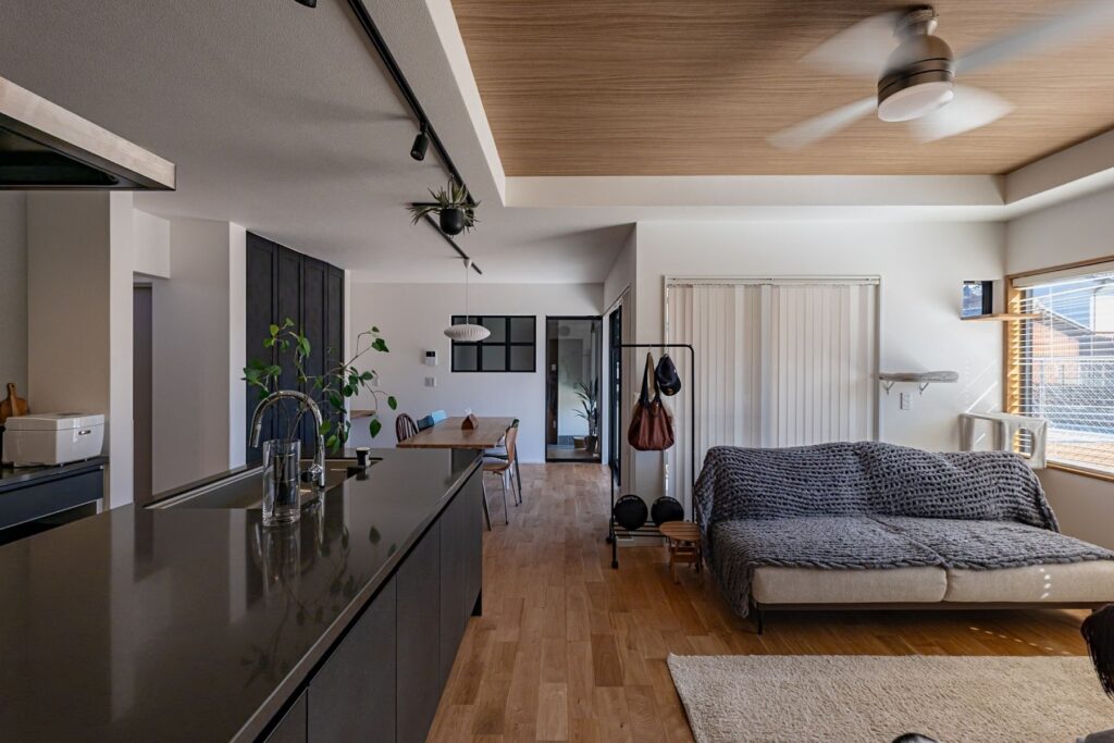 外からは見えにくく、中に入るとやさしく視線が抜ける設計。カーテンを閉め切らなくても、家族だけの時間をのびのびと過ごせます。安心感に包まれながら、日常の何気ないひとときを楽しめる住まいです。