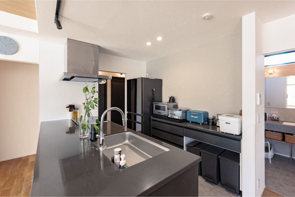 限られた時間の中でも、効率よく家事をこなせるよう、キッチンを起点に生活動線を集約。移動距離を最小限に抑えることで、家事の負担を感じにくい暮らしが叶います。家の中を何度も往復する必要がなく、忙しい朝や帰宅後の時間帯でも動きやすいのが魅力。日々の小さなストレスを感じにくく、「家事がラク=暮らしがラク」だと実感できる間取りです。
