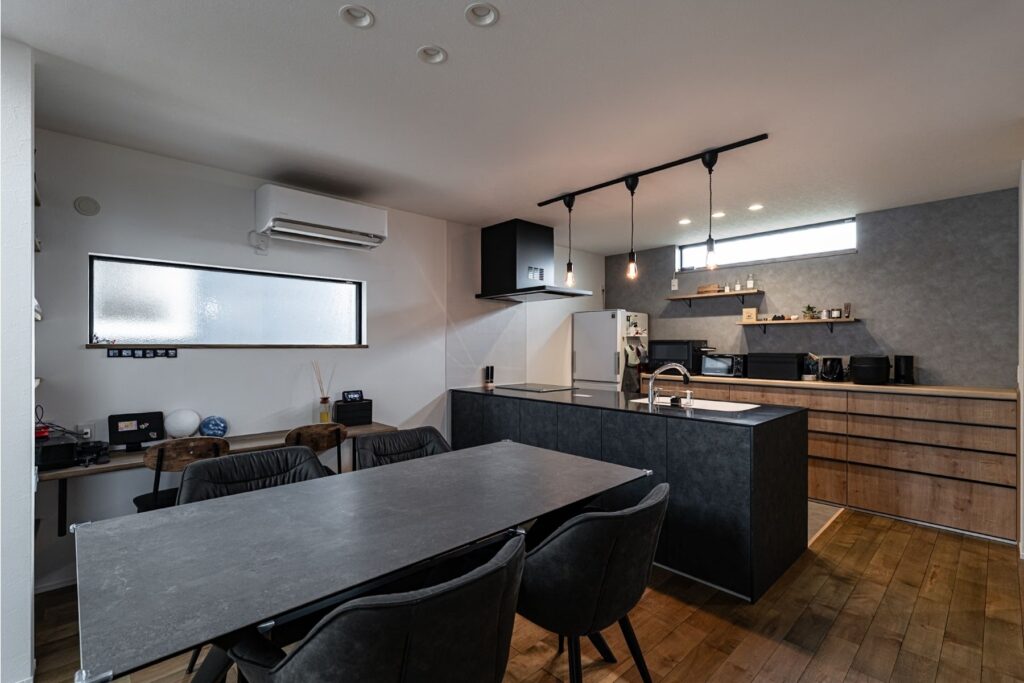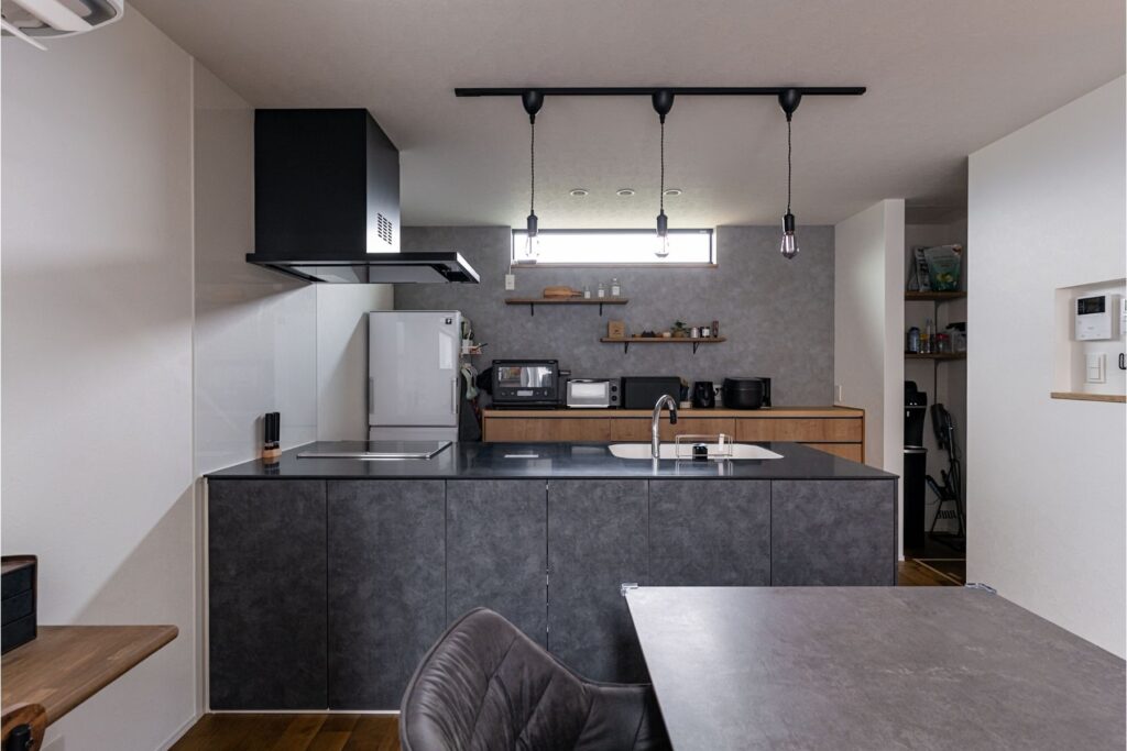 キッチン・ダイニングのすぐそばに設けたスタディスペースは、お子様の宿題やちょっとした作業にちょうどいい居場所。料理をしながらでも、自然と目が届き、声もかけやすい距離感なので、「見守る」と「任せる」のバランスが取りやすくなっています。食事の準備、家族との会話、子どもの学びがひとつの空間の中でつながり、家族の時間が分断されにくいキッチン・ダイニングが実現しました。