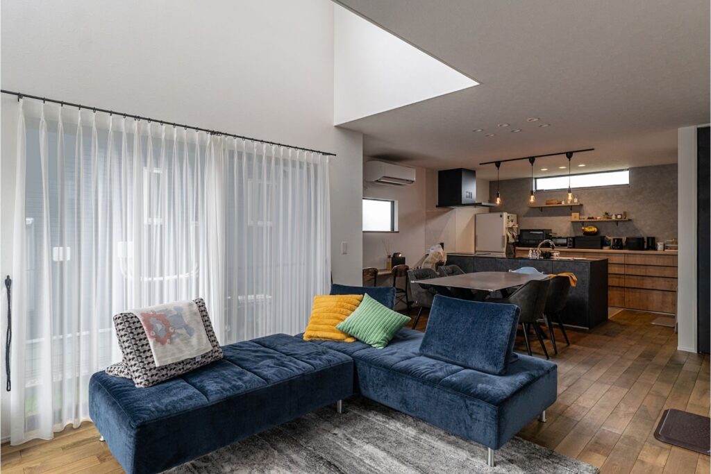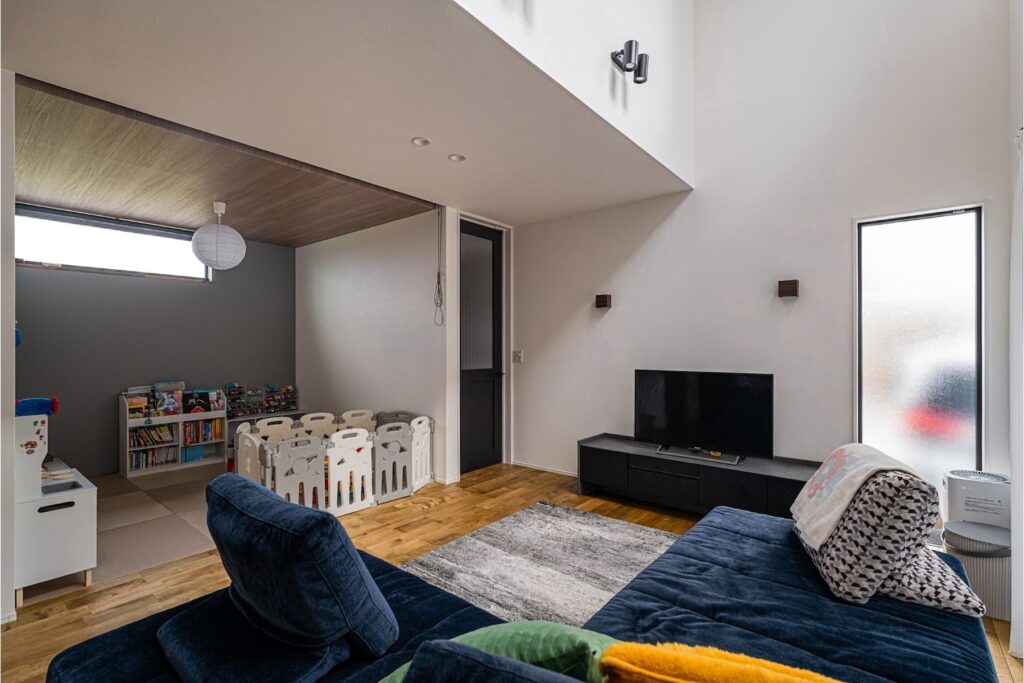 朝は、洗面・脱衣・キッチンがスムーズにつながり、家族それぞれの準備が重なっても慌ただしさを感じにくい動線。日中は、LDKを中心に自然と家族が集まり、和室ではお昼寝や来客対応など、暮らしに“余白”が生まれます。夜は、リビングでくつろぎながら、「今日も無理なく回ったな」と感じられる。