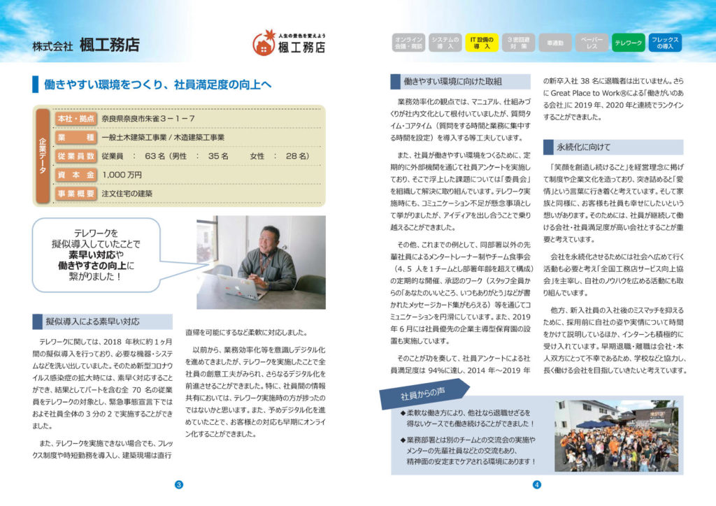 奈良県のホームページ「県内での新しい働き方検討事業」の全国事例に、新型コロナウイルスの影響によるこれからの新しい働き方として、テレワークやフレックス制度の導入など、弊社の取り組みが掲載されました。