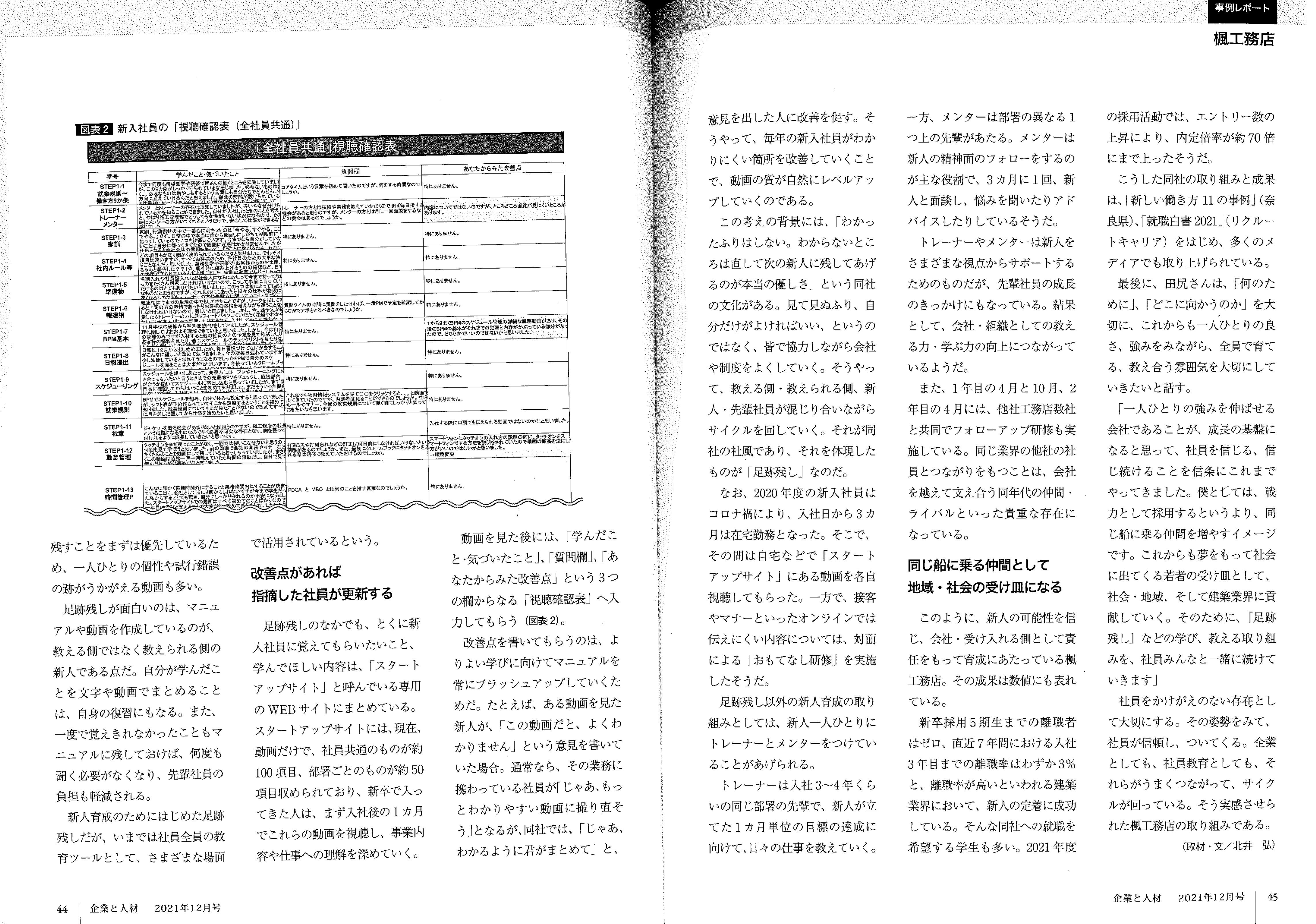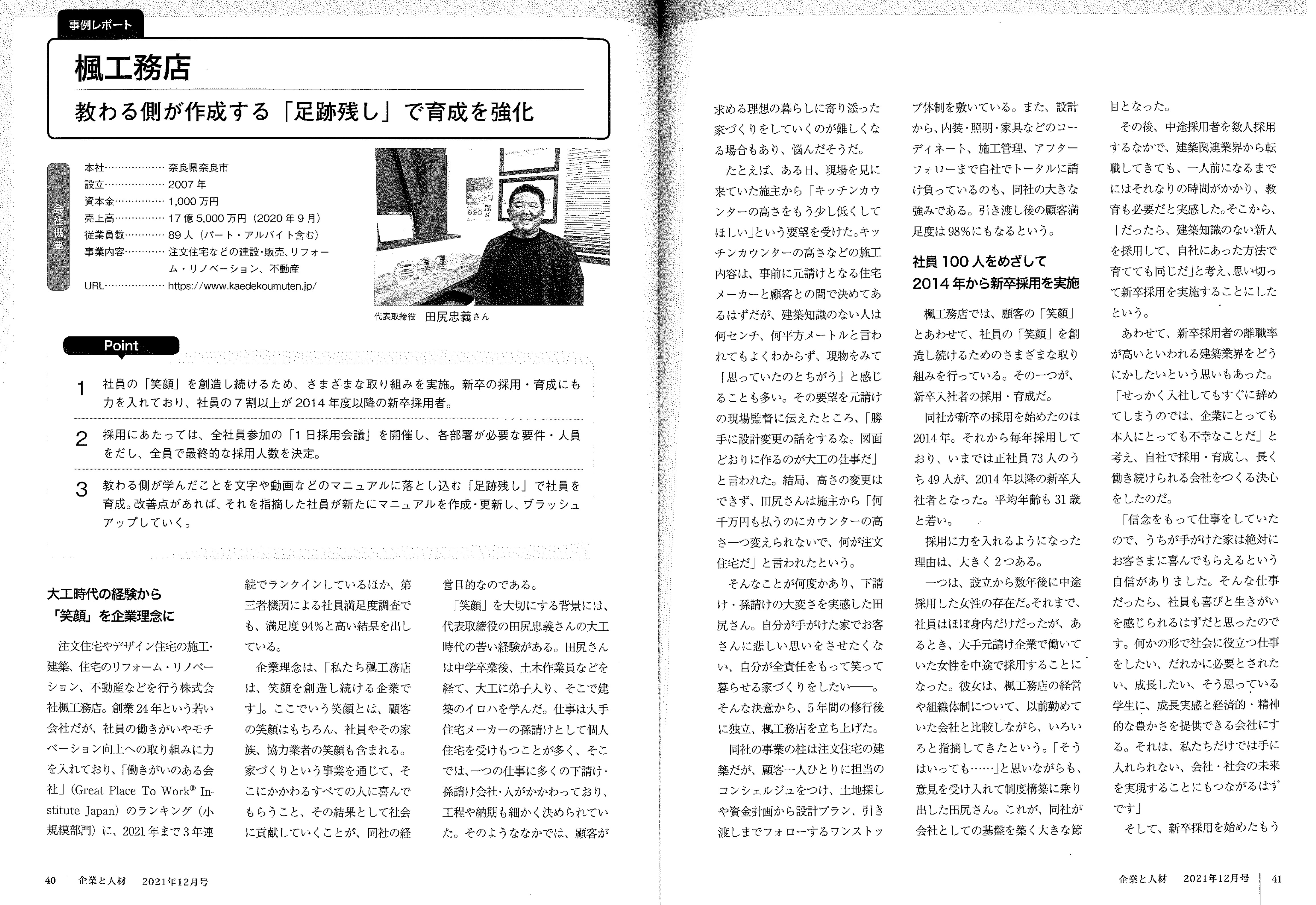 雑誌『企業と人材 12月号』に、弊社の人材育成に関する取り組みについて掲載いただきました。
