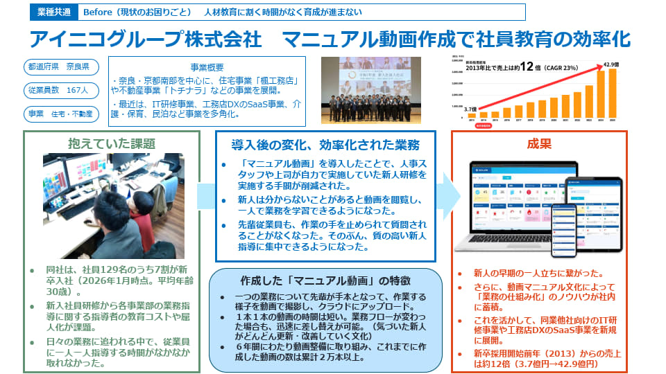 中小企業庁と独立行政法人中小企業基盤整備機構が、中小企業・小規模事業者の省力化や生産性向上へ向けたヒントを提供する支援サイト「省力化ナビ」にて、弊社のマニュアル動画による育成について取り上げていただきました。