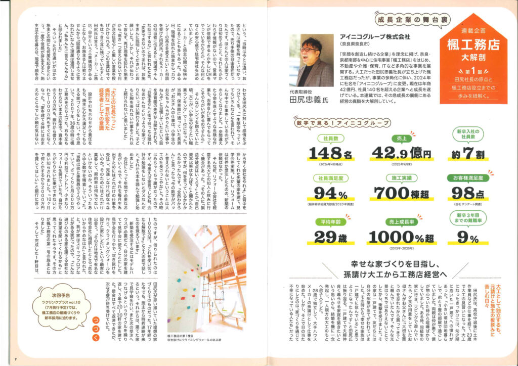 『ツクリンク+』(2026年4月1日号)にて、連載企画第1弾として代表の原点と楓工務店設立までについて取り上げていただきました。