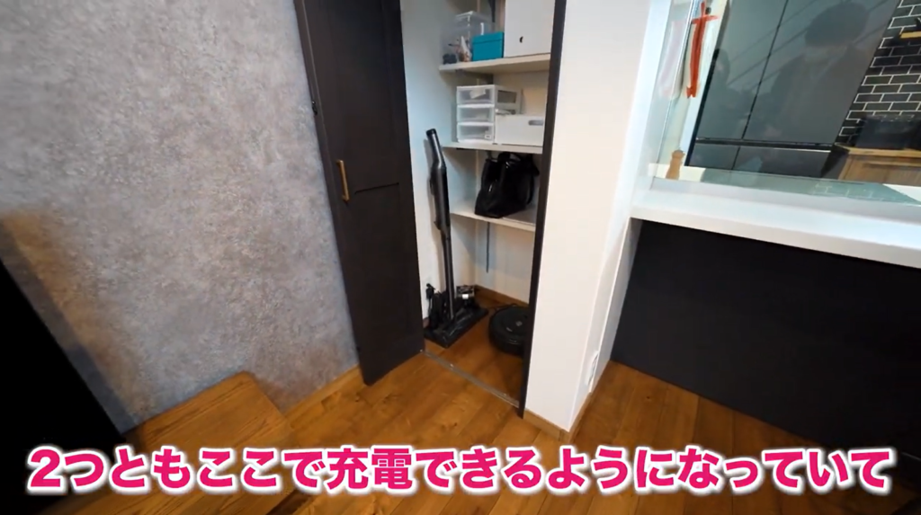 1階の床はすべて段差レス。ルンバが各部屋を自動で掃除でき、収納内に充電スペースも確保。掃除を自動化することで日々の手間が激減しました。