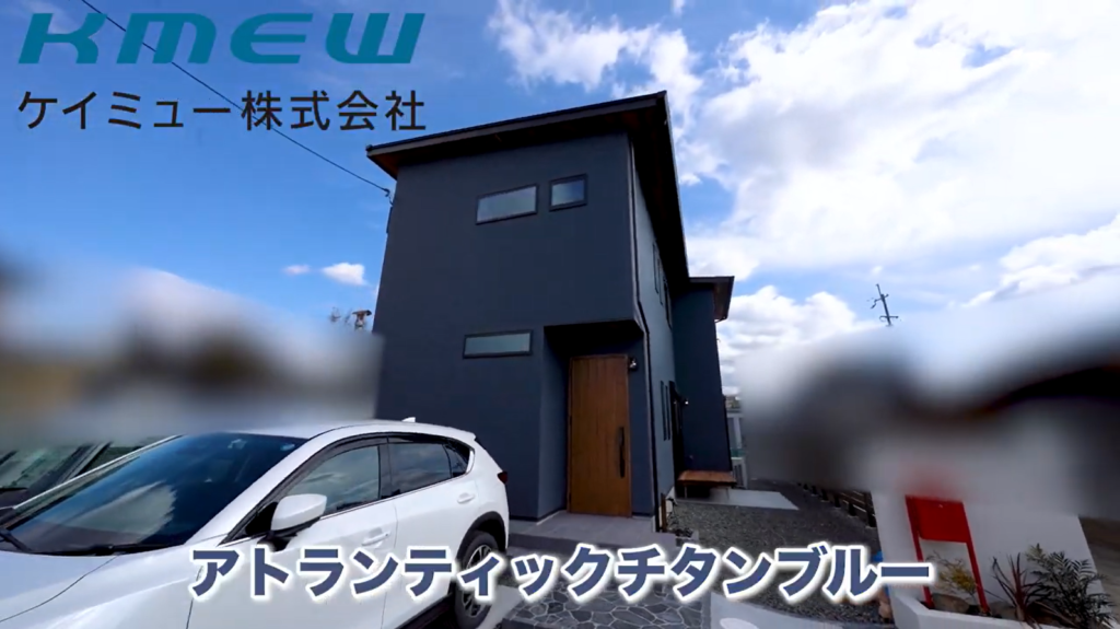 外観は「アトランチックチタンブルー」の外壁とウェスタンレッドシダーの組み合わせで、スタイリッシュかつ温かみを感じるデザイン。屋根には太陽光パネルを設置し、実質0円で電気使い放題という驚きの仕組みを導入しました。