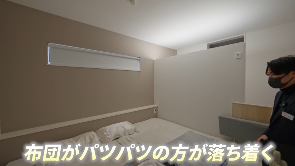 主寝室は、布団を“ぴったり”の幅で収め、ホテルのような落ち着きと安心感を生むレイアウト。