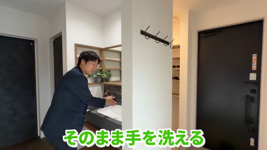 一般的な間取りでは、玄関ホールや洗面前に“通路専用スペース”が生まれます。しかしこの住まいでは、それらを機能と兼用させています。