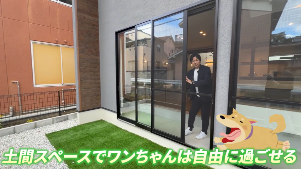 大型犬との暮らしを想定し、外から直接出入りできる動線や足洗い場も完備。