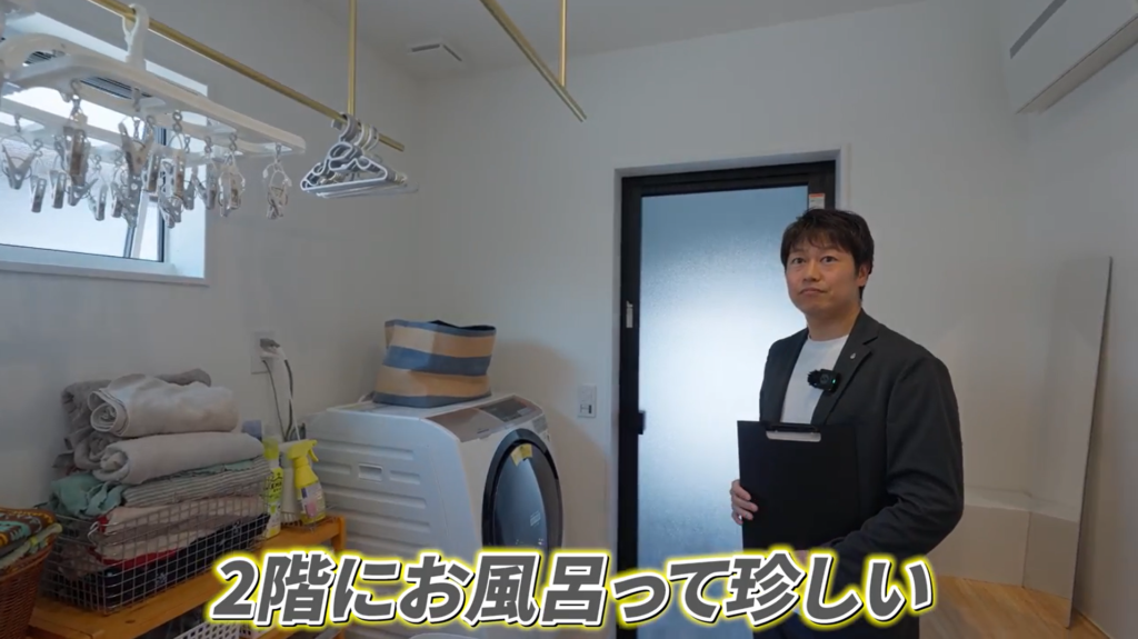 一般的には一階に配置されることが多い浴室や洗濯スペースですが、この家では二階に集約しています。