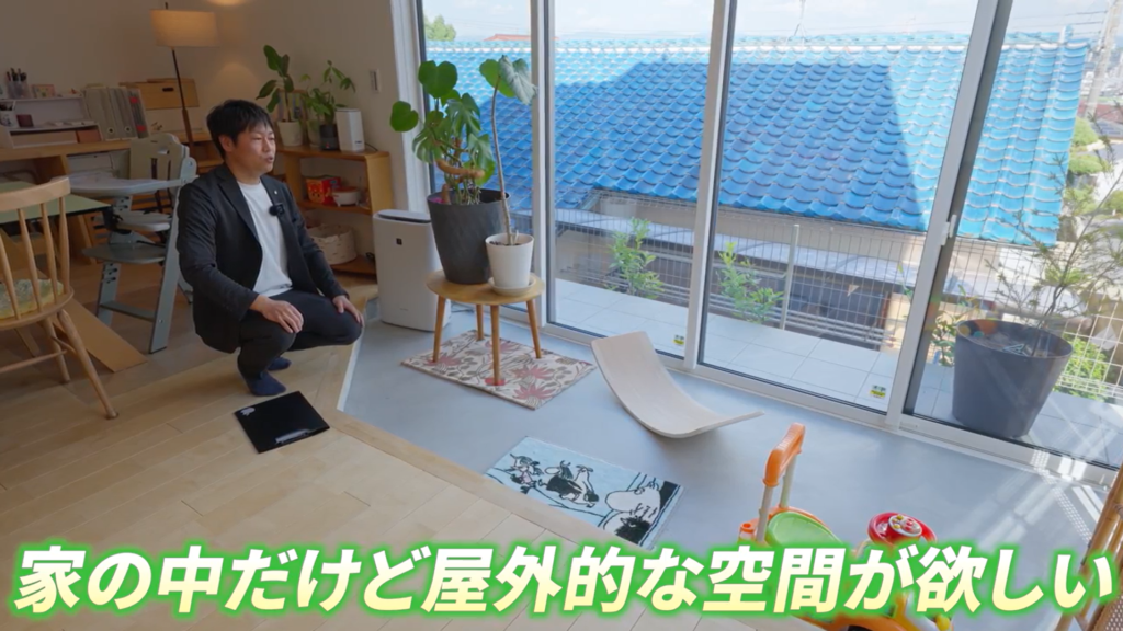 外に庭を広く取らない代わりに、家の中に遊び場をつくる。これが集まりやすさの土台になっています。